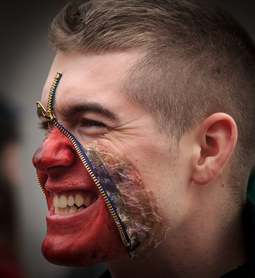 I continue walking through the Halloween streets of Salem taking a photo here and there while I go.  Then I hear this guy say something about someone (probably me) taking pictures of people they don’t even know.  Now how the “F” does he know if I know these people or not?  Of course, that’s assuming he’s referring to me.  Grrrr, just shut the fuck up!  No one asked you!  It made me feel really stupid there for a moment or two and then I thought, “Wow, that pretty much puts the media right out of business, doesn’t it?”  That guy is a dumb ass.  Just think how it would be if we all could only take pictures of people we know.  If that’s the case, then I’m screwed!  No more trips to Salem to catch photos of people in Halloween costumes!  Moving on….