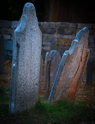 Oh my goodness, it appears to be getting dark now. I get a few photos of the Salem Witch Walk’s lighting falling on the tombstones. It is so hard tearing myself away at this point. Lord, the struggles I go through in this little town!